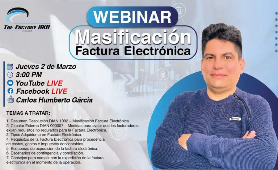 ¿Tienes dudas sobre la Masificación de la Facturación Electrónica? En este webinar conocerás todo acerca de la Masificación de la Factura Electrónica en Colombia, así como la resolución que la rige y otros temas que te interesaran.